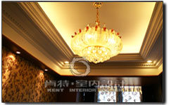 大气的吊顶无疑可以提升房间的气魄,再加上一盏同样大气的吊灯,使得整个房间的气质得到质的飞跃。在我们的设计中会经常使用这种设计手法来突破房间的客观约束。